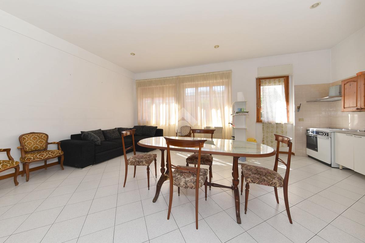 L'appartamento, offre un luminoso soggiorno open space con angolo cottura, ideale per chi ama gli ambienti ariosi e funzionali.
