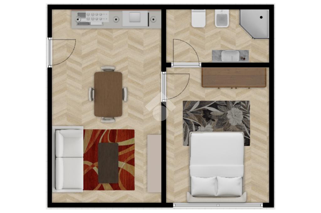 L'appartamento, tipologia bilocale, si apre su un accogliente soggiorno con angolo cottura