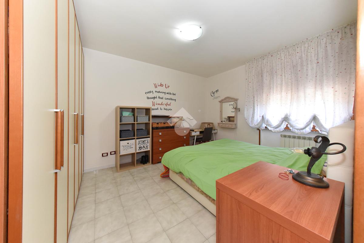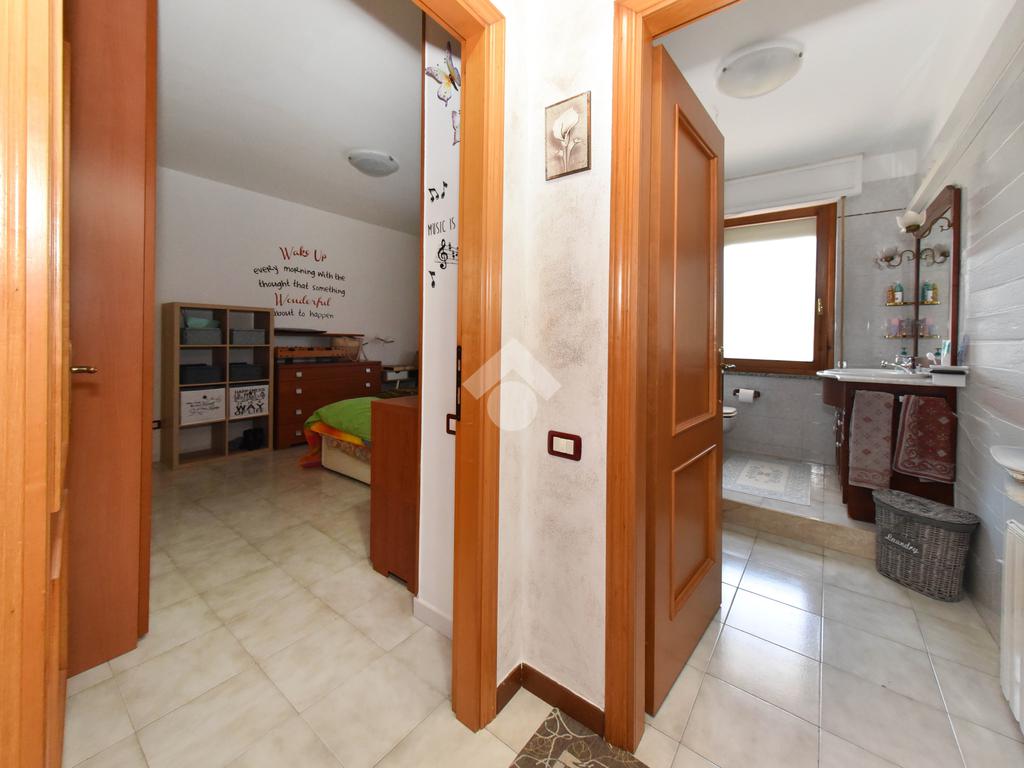 L'appartamento, tipologia trilocale, è situato al primo piano di un piccolo e tranquillo condominio composto solamente da quattro unità abitative