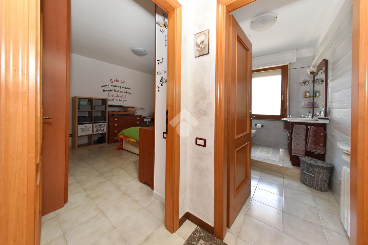 Un disimpegno conduce alla zona notte che ospita due camere da letto matrimoniali e un secondo bagno finestrato dotato di vasca