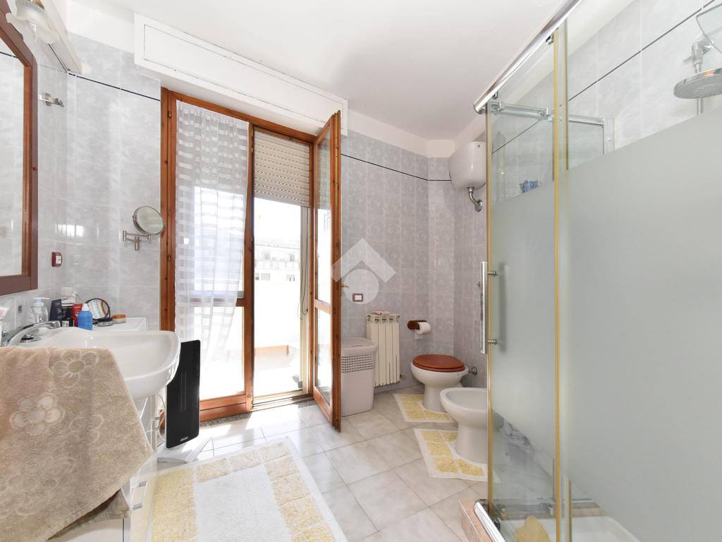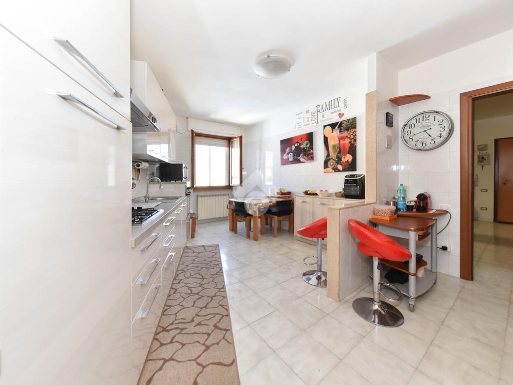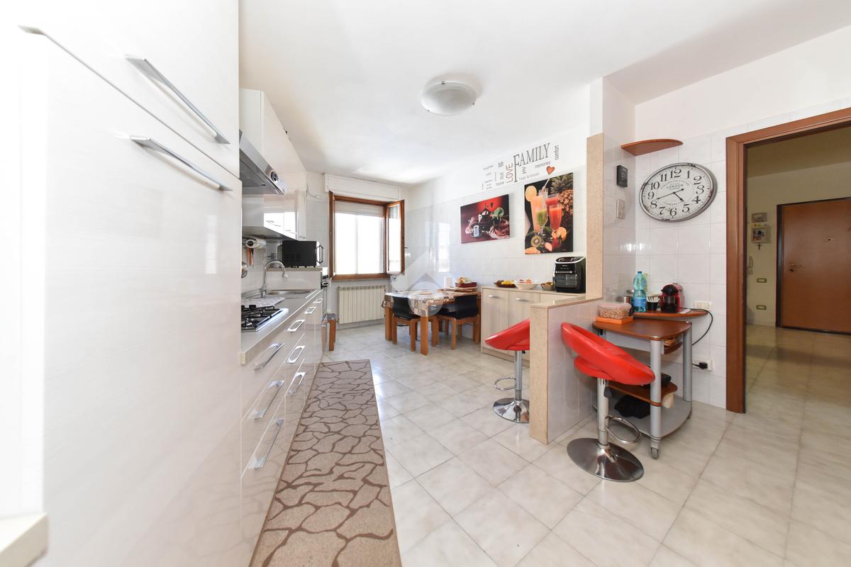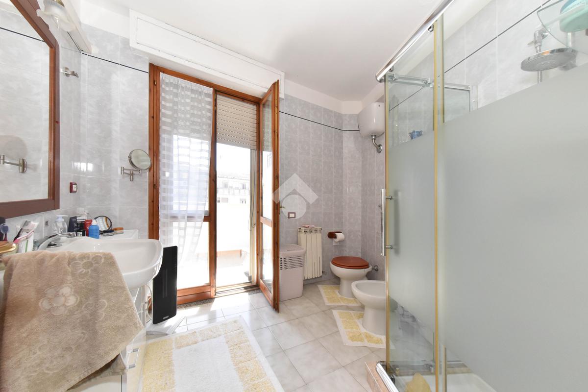 Annessa al soggiorno troviamo la luminosa cucina abitabile servita da un primo bagno con box doccia che affaccia su una veranda dalle generose metrature