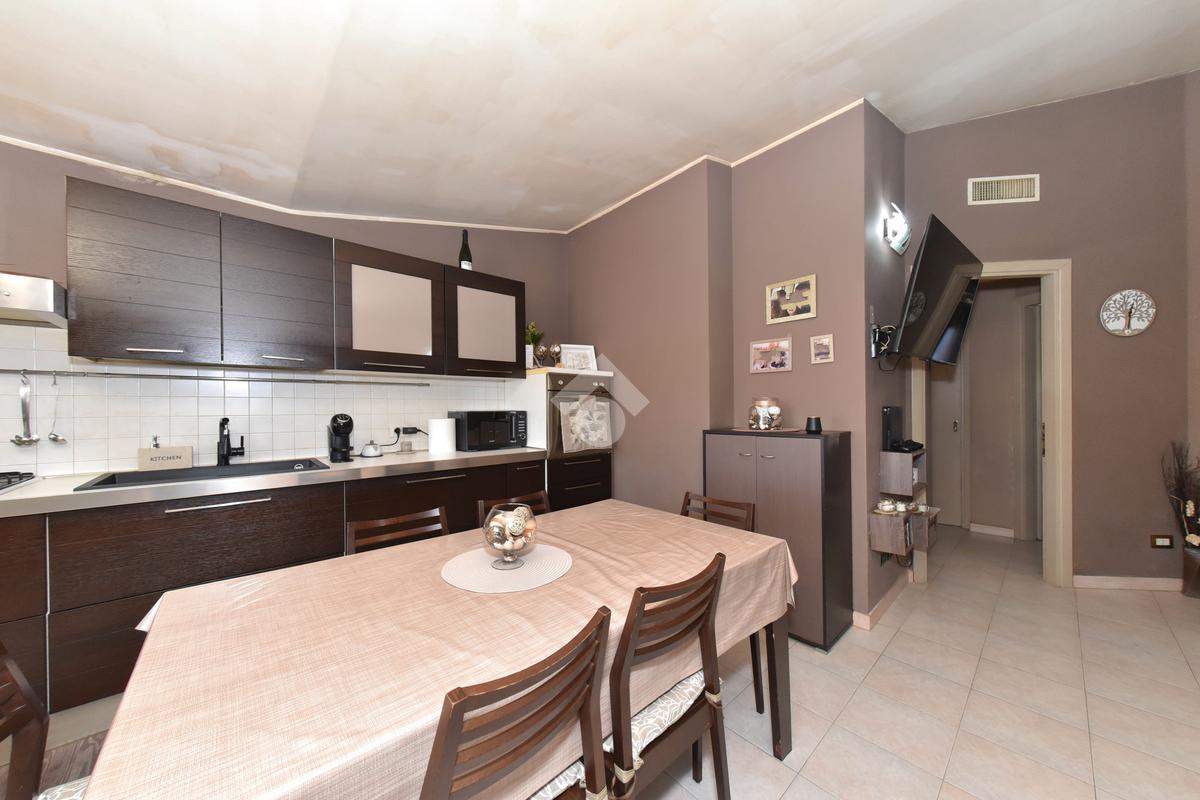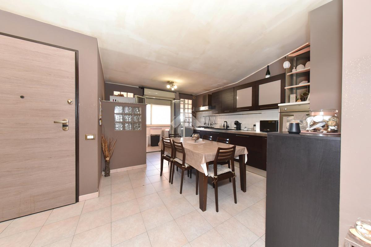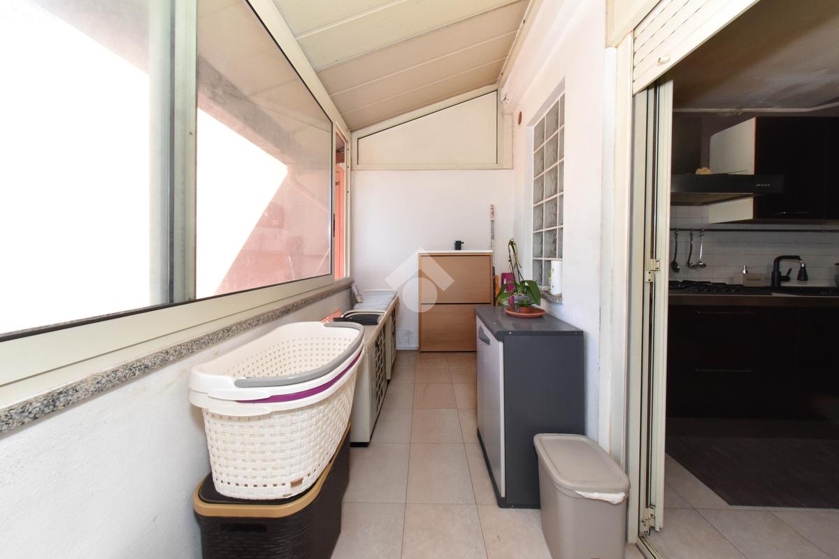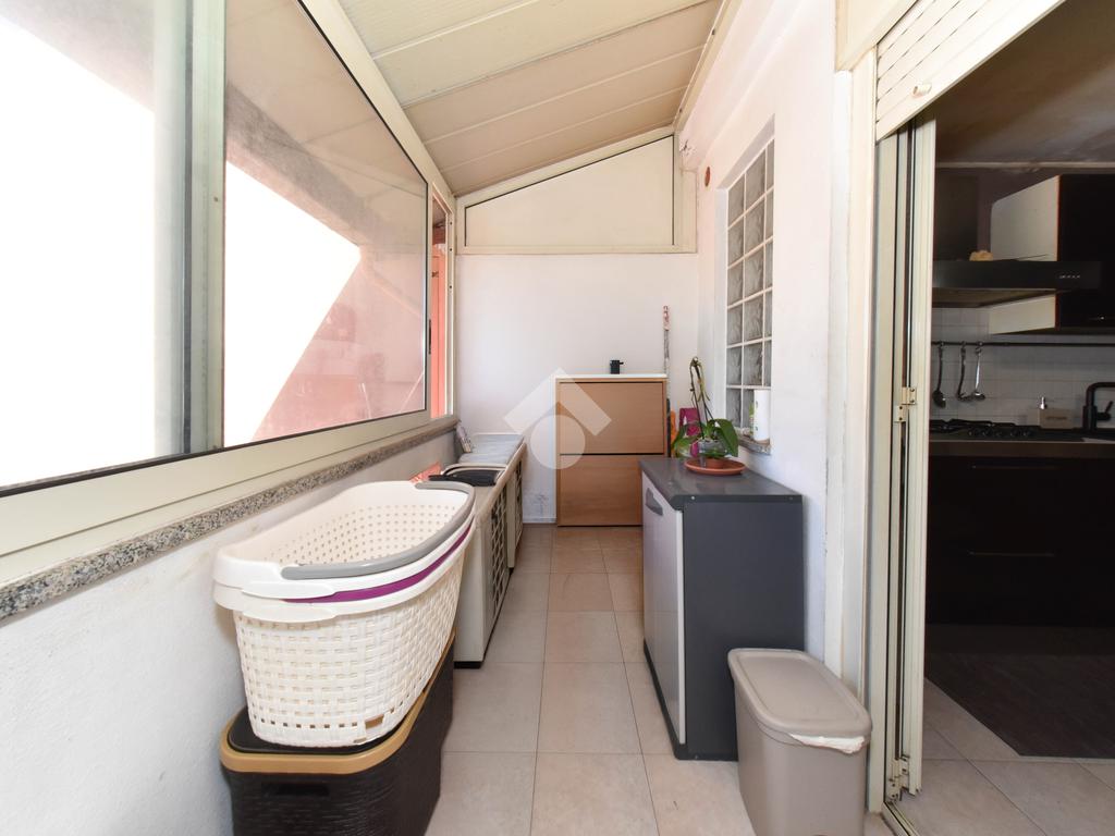 L'ingresso si apre su un soggiorno open space con angolo cottura che affaccia su una comoda veranda attualmente chiusa e adibita a zona lavanderia
